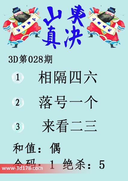 福彩3d第17028期山东真诀图如下所示: