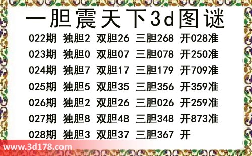 本期一胆震天下3d图谜