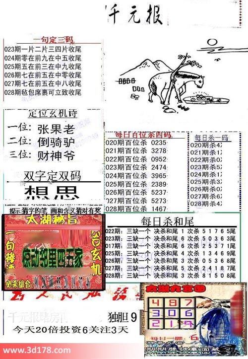 福彩3d第2017028期布衣千元报图详情分析如下: