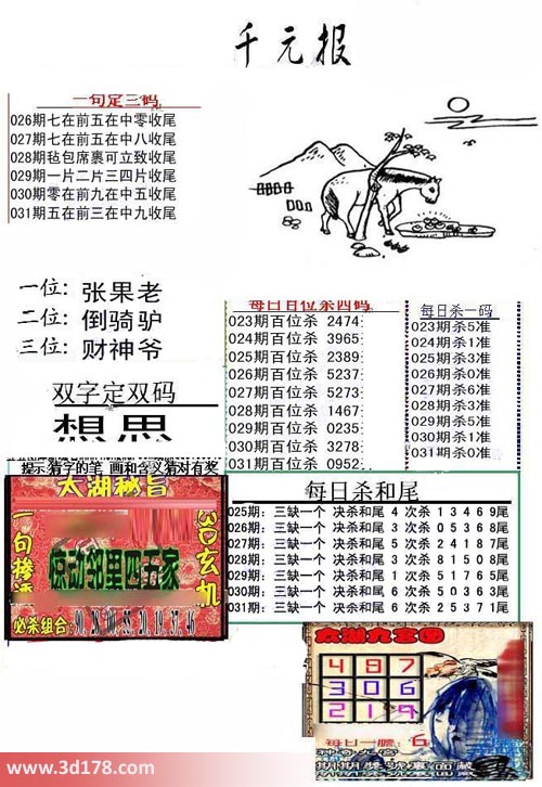 福彩3d第2017031期布衣千元报图详情分析如下:
