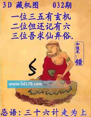 福彩3d第2017032期正版藏机图详解: