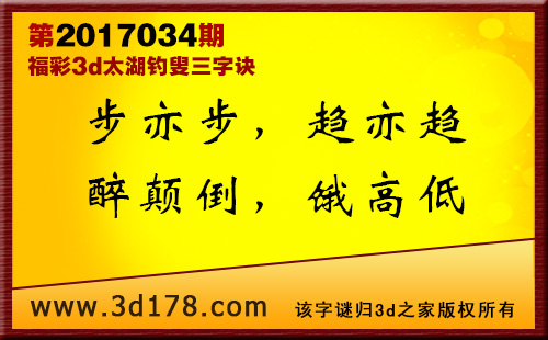 第17034期3d太湖字谜解太湖钓叟三字诀: