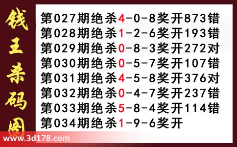 近期3d钱王杀码具体详情: