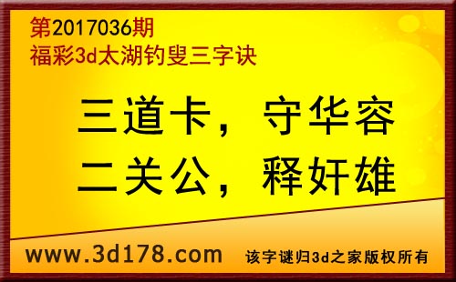 第17036期3d太湖字谜解太湖钓叟三字诀: