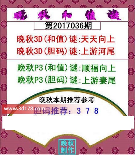 3d之家3d红五晚秋图第2017036期为您推荐分析:晚秋3D(和值)谜:天天向上