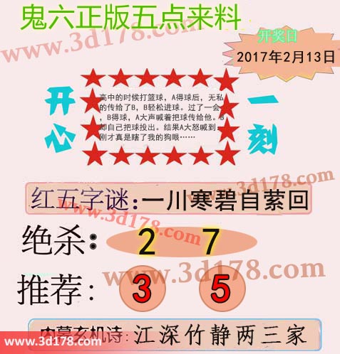 福彩3d第2017037期鬼六五点来料: