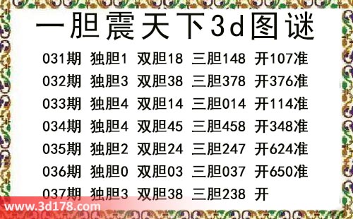 一胆震天下三胆图库由3d之家3d图库频道原创,仅供彩民参考,温馨提供。