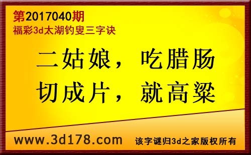 第17040期3d太湖字谜解太湖钓叟三字诀: