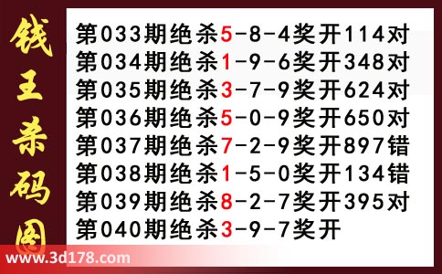 该钱王杀码图由3d之家3d图库频道原创,仅供彩民参考,温馨提供。