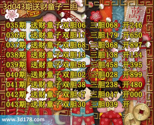 下面我们一起来回顾一下3d之家胆码图送财童子三胆近期推荐详情: