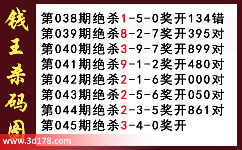 近期3d钱王杀码具体详情: