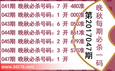 3d第2017047期晚秋杀码图: