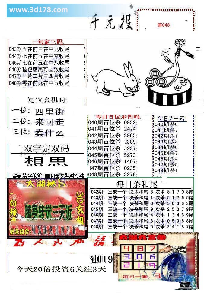 福彩3d布衣图库布衣千元报第2017048期定位玄机诗: