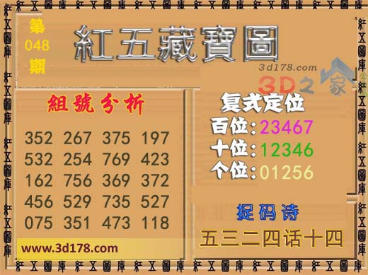 红五藏宝图3d第2017048期: