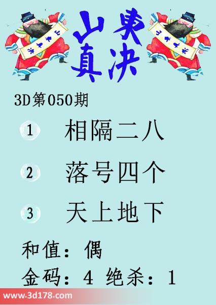 3d第2017050期山东真诀图金码推荐:1、相隔二八