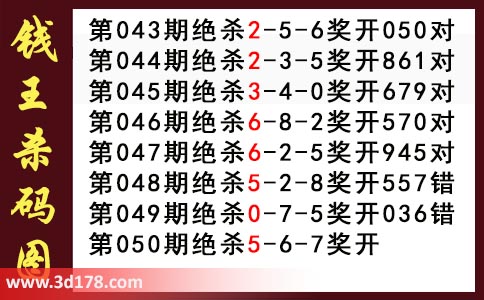 近期3d钱王杀码具体详情: