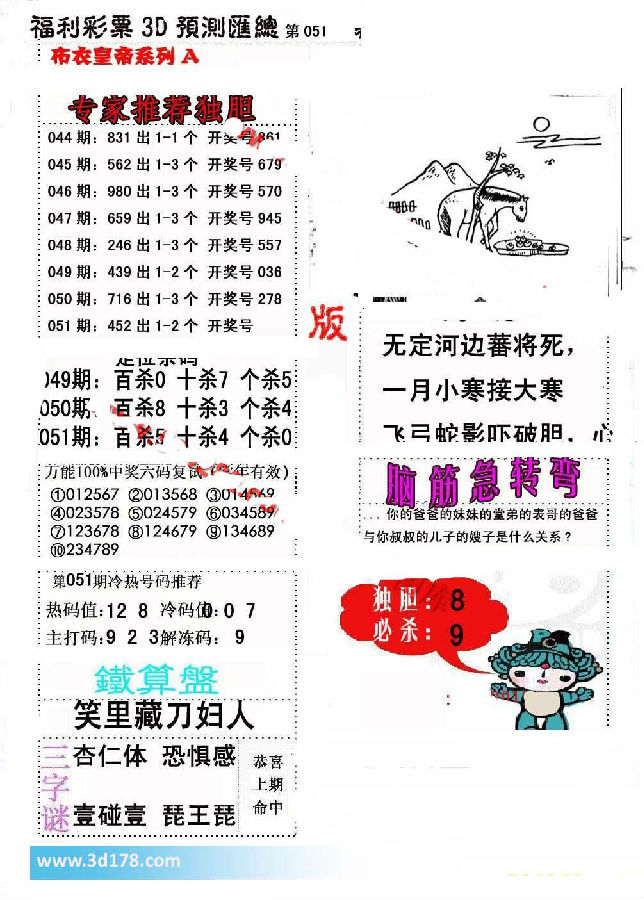 福彩3d第2017051期布衣皇帝A版布衣专家独家推荐:
