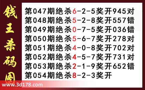 近期3d钱王杀码具体详情: