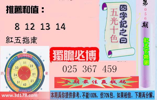 3d之家红五图库第17056期福彩3d红五图为您推荐:福彩3d第2017056期红五玄机图详细内容:推荐和值:8 12 13 14独胆必博:025 367 459四字记之曰:五光十色该红五图库由3d之家3d图库频道原创,仅供彩民参考,温馨提供。