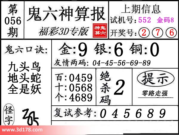 3d第17056期鬼六神算报为您推荐鬼六口诀: