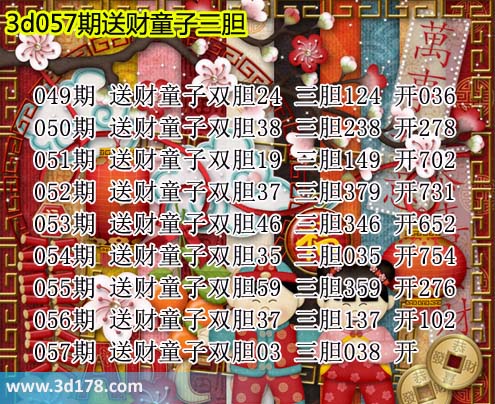 057期 送财童子双胆03 三胆038 开