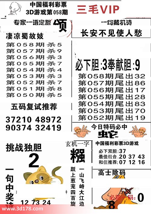 3d第2017058期三毛VIP详解: