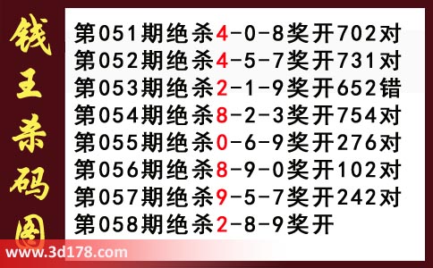 近期3d钱王杀码具体详情: