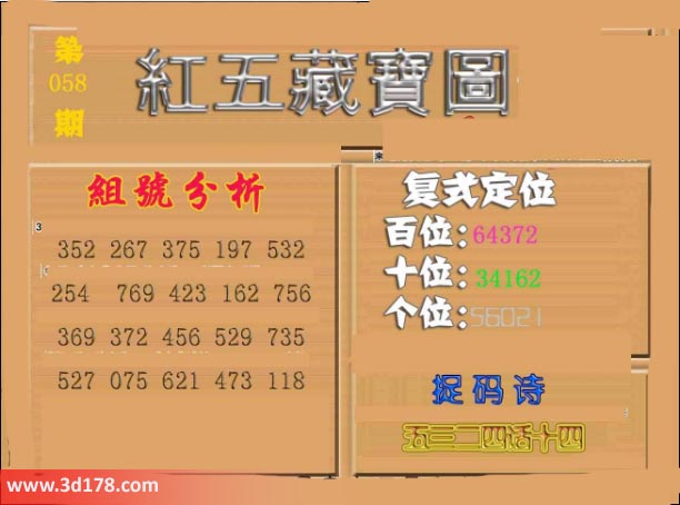 红五藏宝图3d第2017058期: