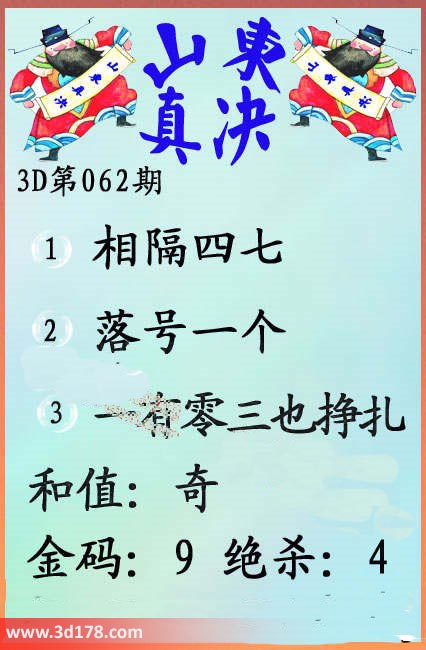 福彩3d第17062期山东真诀图如下所示: