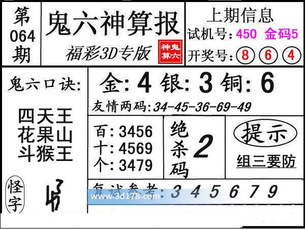 3d第17064期鬼六神算报为您推荐鬼六口诀:
