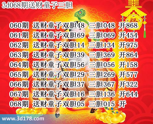 下面我们一起来回顾一下3d之家胆码图送财童子三胆近期推荐详情: