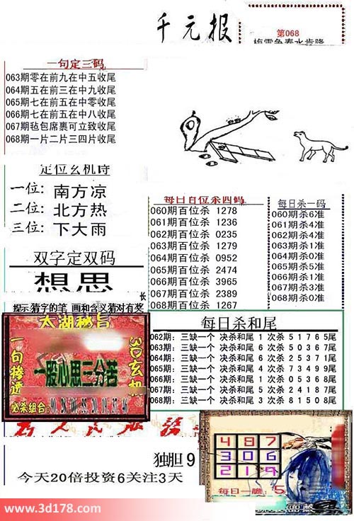 福彩3d第2017068期布衣千元报图详情分析如下: