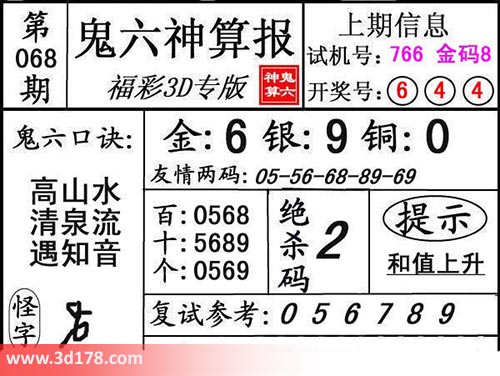 3d第17068期鬼六神算报为您推荐鬼六口诀: