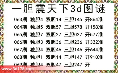 一胆震天下三胆图库由3d之家3d图库频道原创,仅供彩民参考,温馨提供。
