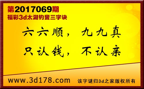 3d第17069期太湖字谜:六六顺,九九真,只认钱,不认亲