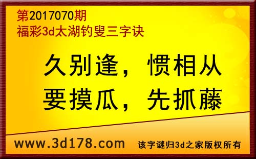 3d第17070期太湖字谜:久别逢,惯相从,要摸瓜,先抓藤