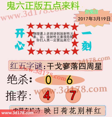 福彩3d第2017071期鬼六五点来料: