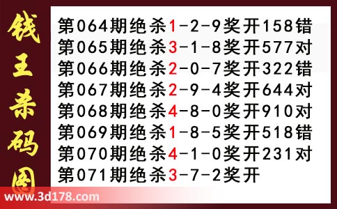 近期3d钱王杀码具体详情: