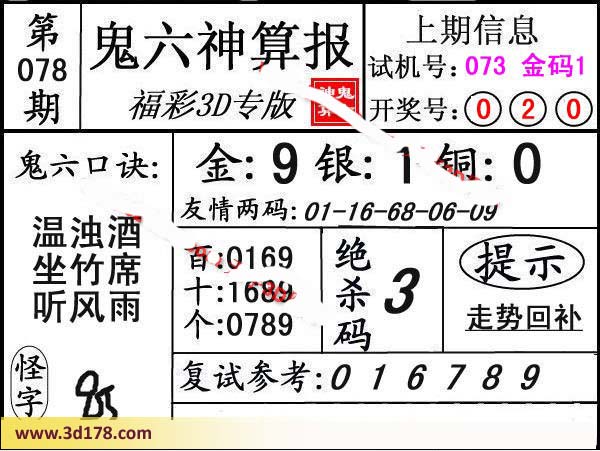 3d第17078期鬼六神算报为您推荐鬼六口诀:
