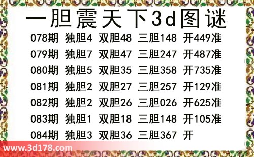 一胆震天下三胆图库由3d之家3d图库频道原创,仅供彩民参考,温馨提供。