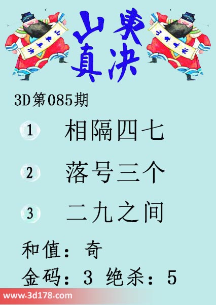 3d第2017085期山东真诀图金码推荐:1、相隔四七