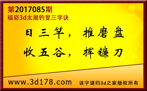 3d第17085期太湖字谜:日三竿,推磨盘,收五谷,挥镰刀