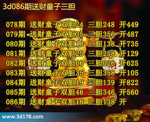 下面我们一起来回顾一下3d之家胆码图送财童子三胆近期推荐详情: