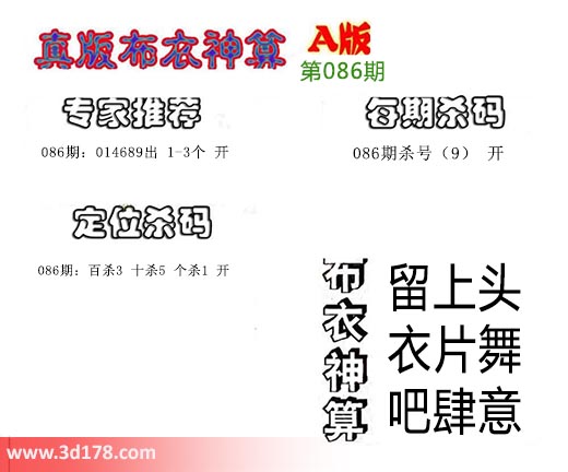 3d之家布衣图库之布衣神算图第2017086详解:086期:014689出 1-3 个