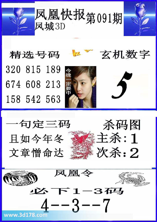 福彩3d凤凰快报图第17091期精选号码推荐: