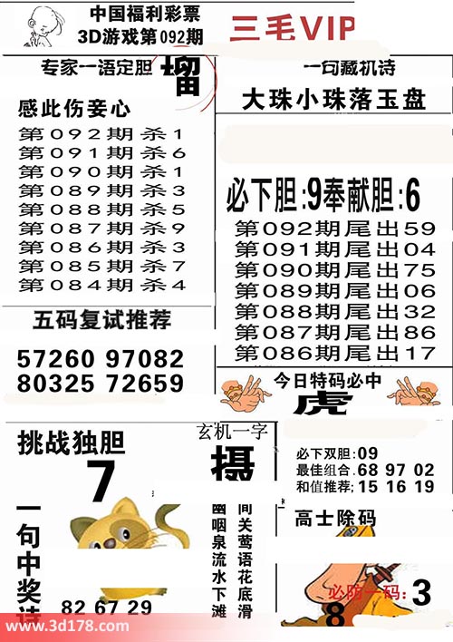 3d第2017092期三毛VIP详解: