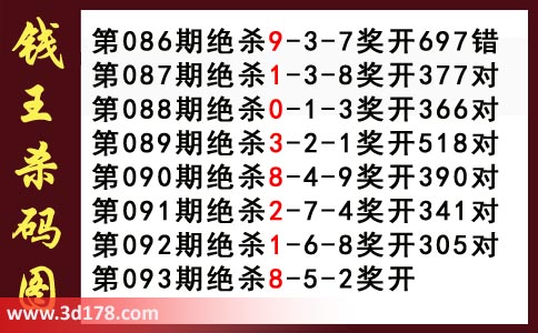 近期3d钱王杀码具体详情:
