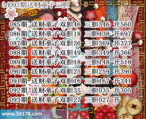 下面我们一起来回顾一下3d之家胆码图送财童子三胆近期推荐详情: