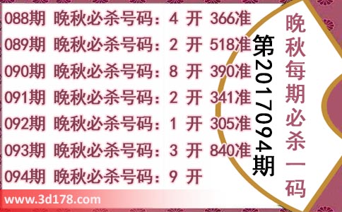 3d第2017094期晚秋杀码图: