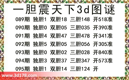 本期一胆震天下3d图谜